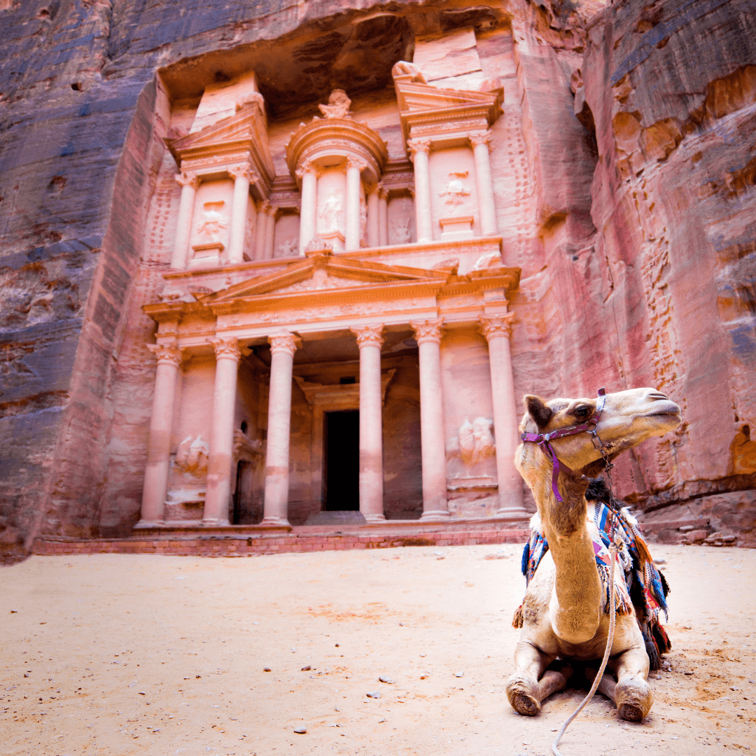 Desayuno Buffet. Salida del hotel hacia Petra por la carretera del desierto hacia Wadi Musa. Llegada a Petra la antigua capital de los nabateos desde el tercer siglo A.C. Ingreso a través del Siq (cañón estrecho), visita a los monumentos esculpidos en Roca Rosa como por ejemplo el tesoro El Khazne (Tumba de un Rey Nabateo), luego los obeliscos, las tumbas, el altar (Al Madbah).